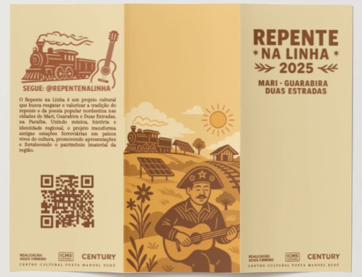Estações ferroviárias serão palcos de repentistas paraibanos em agosto, conforme programação do projeto “Repente na linha”, proposto por Assis Firmino, presidente da Associação Cultural Manoel Xudu, em Mari. O projeto tem como objetivo valorizar a tradição da cantoria de repente, levando grandes poetas para se apresentar nas estações ferroviárias de Mari, Duas Estradas e Guarabira, promovendo ainda a consciência da conservação dos prédios históricos que pertenciam à malha ferroviária na Paraíba, unindo música, história e identidade regional.